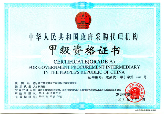 政府采購甲級(jí)證書